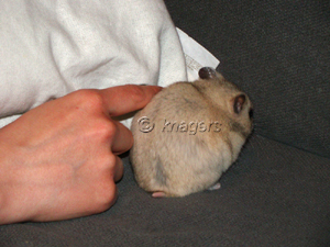 Daar werd ze beschenen met een speciale lamp (ben even de naam kwijt) om uit te sluiten of het schimmel is. Schimmel licht immers groen op onder dit licht. Dat was niet het geval. De dierenarts vertelde me verder dat hamsters 4 soorten mijt konden krijgen maar dan zouden we ook schilfers en korstjes moeten zien. Natuurlijk vertoont Misty deze klachten niet, ze krabt of bijt ook niet aan die plekken (of toch niet meer dan bij een gewone wasbeurt). Toch krijgt ze voor alle zekerheid Stronghold 0,025 ml toegediend in de nek, dat middel pakt alle parasieten aan. Dit moet ik binnen 4 weken nog eens herhalen. Verder moet ik de kale plekjes 3 dagen insmeren met Surolan. Dit werkt eigenlijk tegen schimmels maar bevat ook antibiotica en is dus ontstekingswerend en jeukremmend. Als ik haar heb ingesmeerd laat ik haar loslopen op de grond. Zo krijgt dit middel de kans om in te trekken want als ze losloopt, likt ze zichzelf niet.